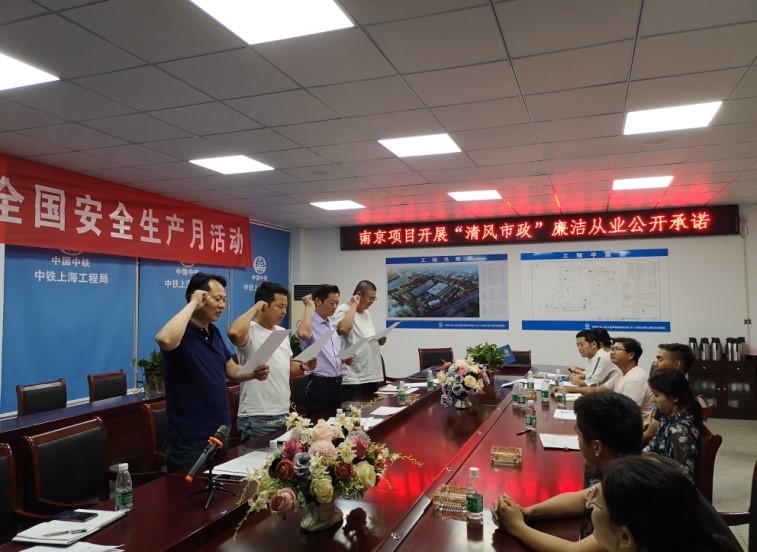 南京浦口水廠改擴(kuò)建項(xiàng)目部組織開展項(xiàng)目領(lǐng)導(dǎo)人員廉潔從業(yè)公開承諾活動(dòng)。6月12日,南京工程項(xiàng)目黨支部組織浦口水廠改擴(kuò)建項(xiàng)目部領(lǐng)導(dǎo)人員開展廉潔從業(yè)公開承諾活動(dòng),項(xiàng)目部全體員工參加。會(huì)上,項(xiàng)目黨支部副書記關(guān)立華傳達(dá)學(xué)習(xí)了公司黨委關(guān)于開展“清風(fēng)市政”廉潔主題宣傳教育活動(dòng)的通知,接著組織全體員工觀看了廉潔教育警示片《沉淪》,通過違紀(jì)違規(guī)受到懲處的真實(shí)案例,警示大家進(jìn)一步增強(qiáng)紀(jì)律意識(shí)、規(guī)矩意識(shí)和責(zé)任意識(shí),自覺做到遵規(guī)守紀(jì)、廉潔從業(yè)。隨后,項(xiàng)目部領(lǐng)導(dǎo)班子成員在全體員工面前進(jìn)行廉潔從業(yè)公開承諾,并在承諾公示牌上逐一簽名。會(huì)后,項(xiàng)目黨支部將領(lǐng)導(dǎo)人員的廉潔從業(yè)承諾書在駐地黨務(wù)公開欄進(jìn)行公示,廣泛接受職工群眾監(jiān)督。(劉圣濤)
