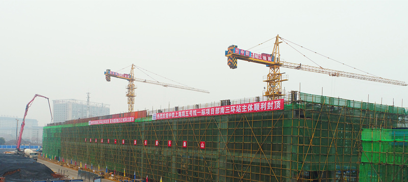 武漢軌道交通5號線是溝通順江方向的重要客運交通走廊,連接青菱白沙組團、武昌濱江活動區、武漢火車站等等諸多城市熱點區域。自2017年4月進場以來,武漢市軌道交通5號線一標項目部全體員工以2017年實現南三環站封頂為目標,積極投入到南三環站的建設中,先后克服了前期施工用電、用水不到位等困難,在嚴格卡控工程安全、質量、工期的前提下,經過230天艱苦鏖戰,于12月29日完成車站主體封頂。